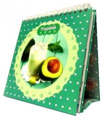 Treść notatnika jest podzielona na 6 czytelnych częśći. Łatwy dostęp do każdego rozdziału dzięki czytelnym registrom. ROZDZIAŁY: 1.Dobre rady 2.Przekąski, sałatki, sosy 3.Zupy, dania jednogarnkowe 4.Dania główne 5.Desery, domowe wypieki 6.Napoje, przetwory domowe Przepiśnik zawiera 252 strony, większość z nich jest przeznaczona na notatki. Specjalna konstrukcja przepiśnika pozwala postawić go pionowo na stole, dzięki czemu zajmuje on mniej miejsca i łatwiej z niego korzystać podczas przygotowywania potrawy.