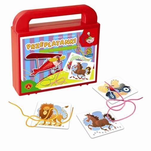 Przewlekanie kolorowych sznurków przez dziurki to świetny trening zręczności, precyzji i cierpliwości. "Przeplatanki" to dobry wstęp do nauki wiązania butów oraz kokardek. Zawartość pudełka: 8 tabliczek z otworami, 4 sznurki, instrukcja.