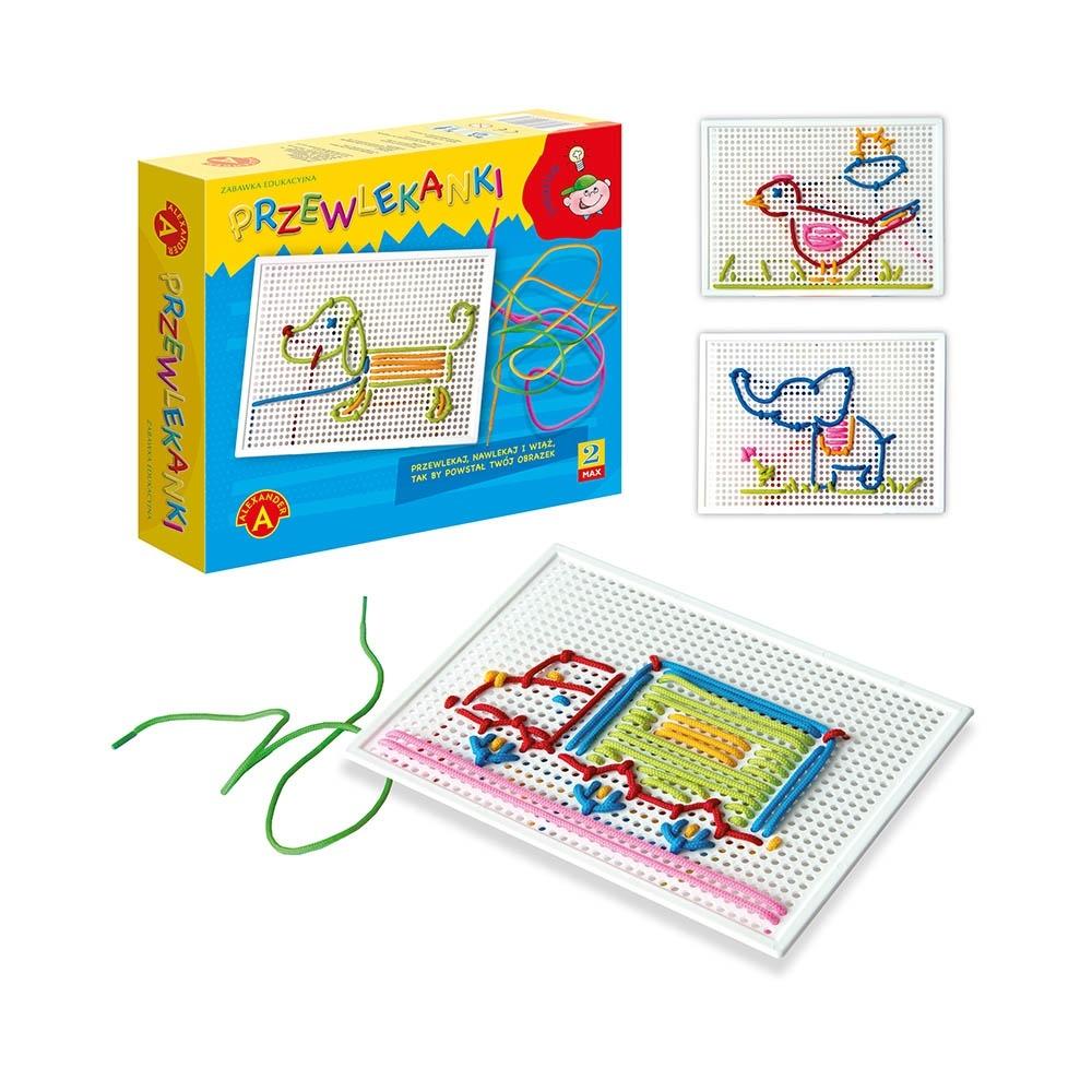 To druga, większa wersja zabawki, która polega na przewlekaniu kolorowych linek przez otwory ażurowej płytki. Linki należy przewlekać w taki sposób, by udało się stworzyć ciekawy obrazek. Zabawka rozwija wyobraźnię, kreatywność i jest znakomitym treningiem zręczności manualnej.