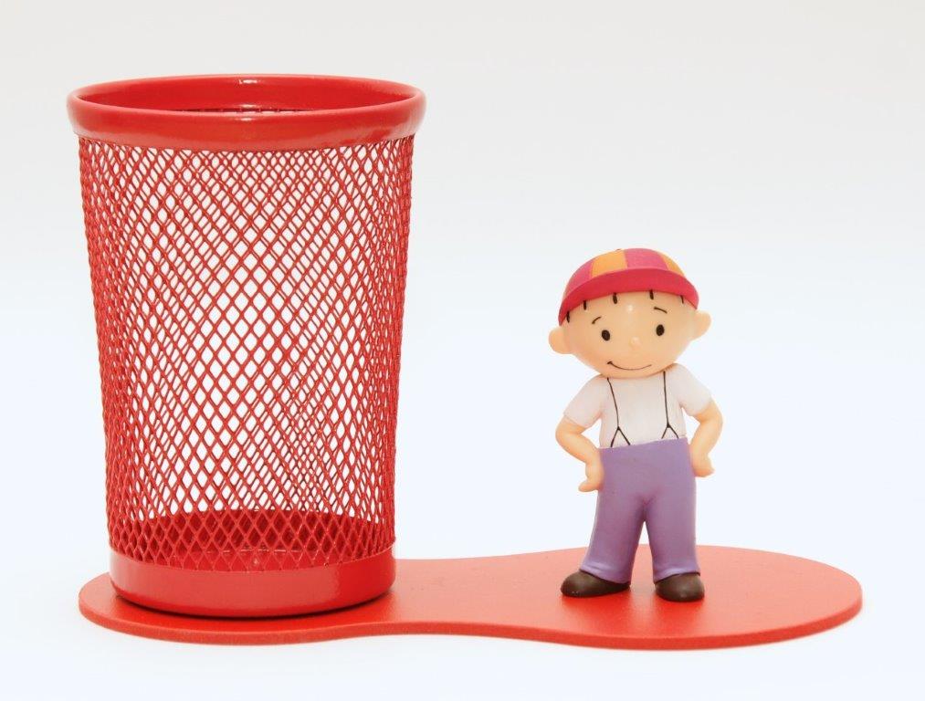 Przybornik biurkowy z jedną figurką.