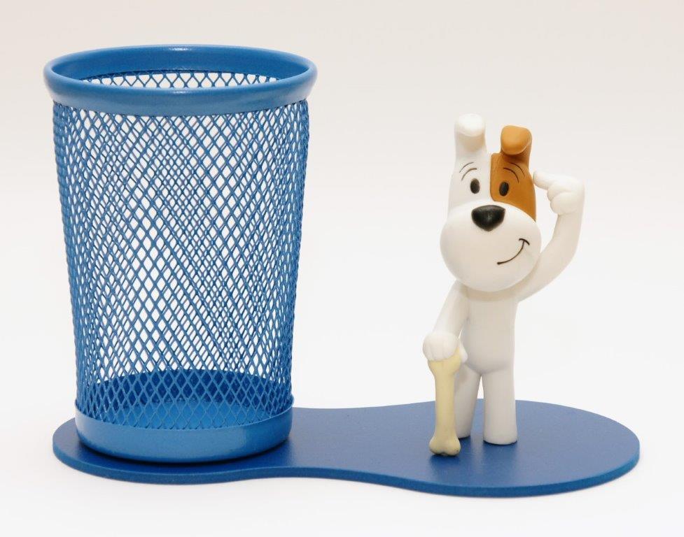 Przybornik biurkowy z jedną figurką.