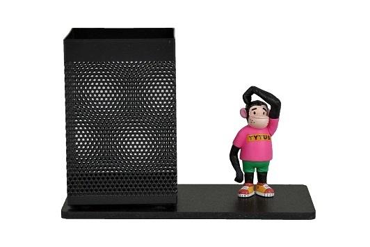 Przybornik biurkowy z jedną figurką.
