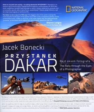 O największym rajdzie świata opowiadało już wielu. Przystanek Dakar. Rajd okiem fotografa jest historią jakże różną od pozostałych, bo widzianą oczyma artysty. Autor zdradza często niedostrzegane kulisy Dakaru. Opowiada o ludziach drugiego planu o których media milczą, choć bez nich nie byłoby tego rajdu. Dzięki wyjątkowym fotografiom i niepozbawionym humoru opisom zabiera nas w nieprawdopodobną podróż po wspaniałych krajobrazach Ameryki Południowej, często niedostępnych dla zwykłych zjadaczy chleba. Opowieść okraszona komentarzami polskich zawodników jest także doskonałym podręcznikiem dla wszystkich podglądających rzeczywistość przez wizjer aparatu fotograficznego. Jacek Bonecki, kontynuując cykl, który rozpoczęła jego pierwsza książka Fotograf w podróży, zdradza pasjonatom tajemnice swojego warsztatu i zwraca uwagę na techniczne aspekty fotografii rajdowej. Jacek Bonecki, urodzony w 1969 r., fotograf uniwersalny i popularyzator fotografii, z wykształcenia operator filmowy, producent telewizyjny, dziennikarz. Ma na swoim koncie nie tylko kilkaset produkcji telewizyjnych, ale także wiele wystaw fotograficznych w kraju i za granicą. Wykładał w wielu szkołach fotograficznych w Polsce. Prowadzi warsztaty fotograficzne, które cieszą się dużym uznaniem wśród uczestników. Realizując swoją pasję podróżowania, odwiedził ponad sześćdziesiąt krajów na sześciu kontynentach. Wspomnienia z podróży umieścił w swoim portfolio fotograficznym.