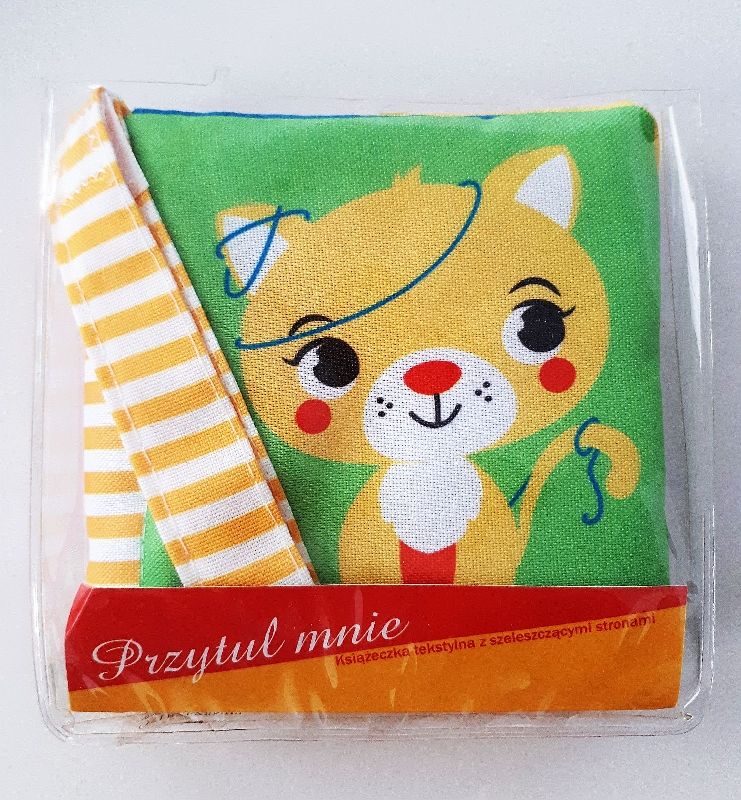 Seria obrazkowych książeczek dla najmłodszych dzieci, wykonanych z tkaniny. Piękne, kolorowe ilustracje zwierzątek zachęcą dzieci do poznawania otaczającego je świata. Ostatnia strona ksiażeczki ma wbudowaną wewnątrz szeleszczącą folię. Każda książeczka wyposażona jest w paseczek z rzepem, który umożliwi rodzicowi przyczepienie książeczki do wózeczka, by dziecko zawsze mogło ją mieć ze sobą. Książeczki zapakowane w filową torebkę z headerem z eurodziurką zapinaną na nap .