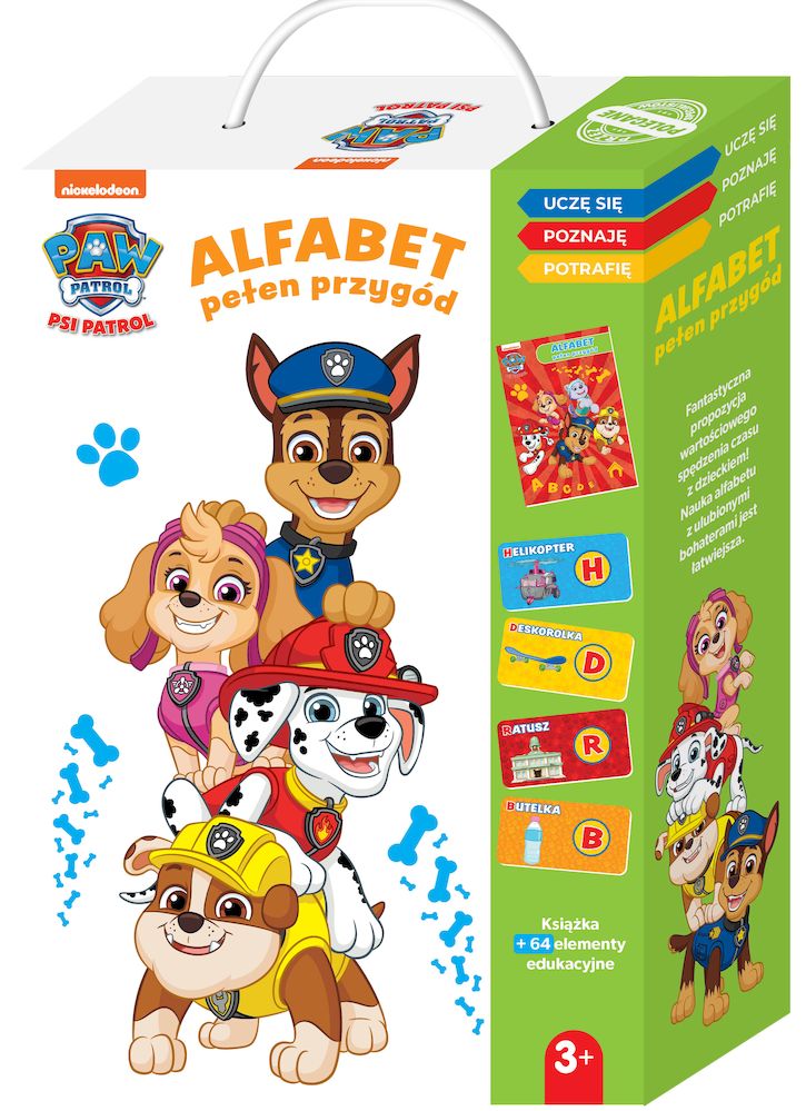 Edukacyjna seria produktów 'Uczę się, poznaję, potrafię' z uwielbianymi przez dzieci bohaterami Psiego Patrolu. W kartonowym pudełku z rączką poza książką znajdziemy elementy edukacyjne wspierające rozwój przedszkolaka w najważniejszych obszarach. W pudełku ksiażka 'Alfabet pełen przygód' oraz 64 elementy edukacyjne do nauki alfabetu. To fantastyczna propozycja na wspólne spędzanie czasu w połączeniu z wyśmienitą zabawą. Idealne także na prezent!