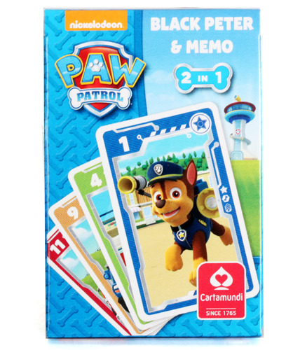 Gra karciana czarny Piotruś i Memo - PAW PATROL Piotruś/Memo PREMIUM (lakier metaliczny na opakowaniu, większy rozmiar kart). Czarny Piotruś to inaczej Piotruś. Piotruś to gra karciana dla dzieci, w której bierze udział od 3 do 5 osób. Talia do Piotrusia składa się z 25 kart. W skład talii wchodzi 12 par oraz jedna karta nie mająca pary nazywana Czarnym Piotrusiem.