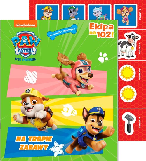"Psi Patrol. Ekipa na 102!" zawiera zagadki, łamigłówki oraz kolorowanki z ulubionymi bohaterami w roli głównej. W środku również kolorowe naklejki z dzielnymi pieskami! Rezolutne szczenięta Marshall, Rubble, Chase, Rocky, Zuma i Skye oraz dziesięcioletni chłopiec Ryder nigdy nie odmówią pomocy potrzebującym-pomagaj pieskom w ich bohaterskiej misji poprzez rozwiązywanie różnorodnych zadań.