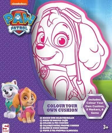 Poduszka chase do kolorowania - Psi patrol. W zestawie poduszka do kolorowania, 5 flamastrów i kryształki ozdobne.