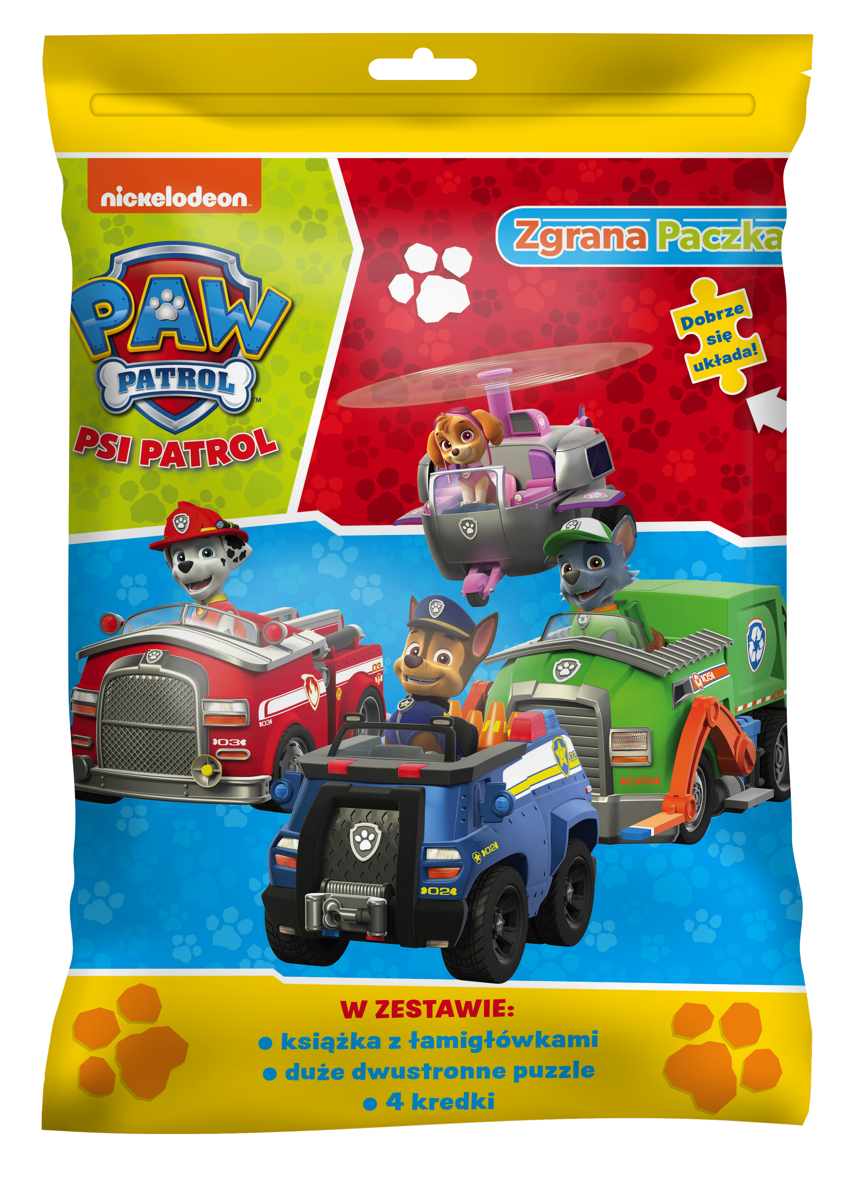 Zestaw Zgrana paczka, ruszaj na wspaniałą przygodę. Megapaczka zawiera książkę z mnóstwem zadań i łamigłówek, kolorowe kredki oraz dwustronne puzzle. Jeden z obrazków układanki można pokolorować według własnego pomysłu. Zgrana Paczka naprawdę dobrze się układa. Sprawdź to! Produkt zawiera zawieszkę na euro haczyk.