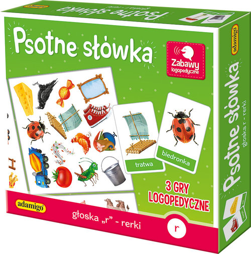 Seria gier PSOTNE SŁÓWKA przeznaczona jest dla wszystkich, którzy chcą doskonalić prawidłową wymowę trudnych głosek. Psotne polskie słowa często sprawiają najmłodszym wiele trudności. Dzięki grze ćwiczenia logopedyczne staną się przyjemnością.