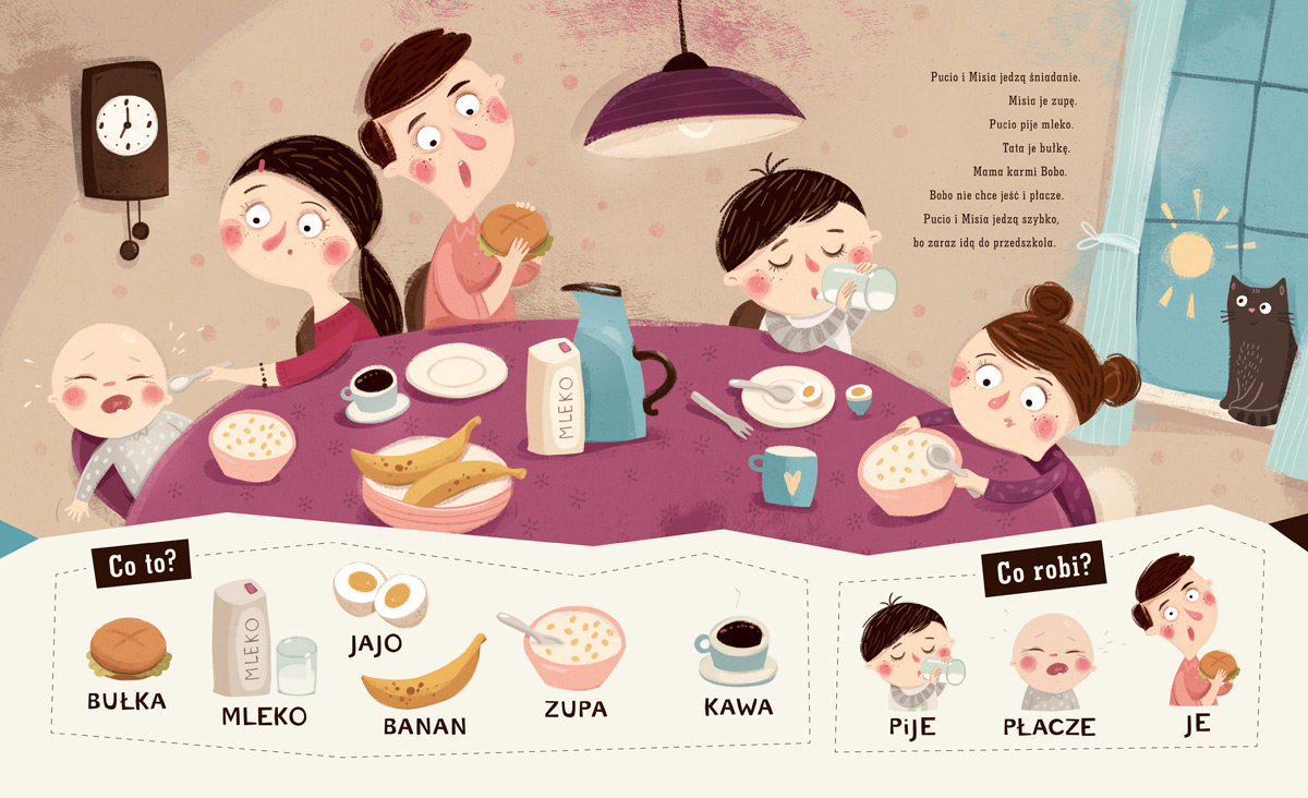 Celowo prosta w formie i wzbogacona pięknymi ilustracjami książka w naturalny sposób wspiera rozwój mowy dziecka.