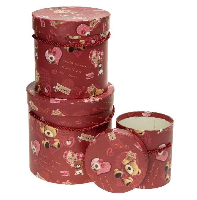 Pudełko Flower Box 3szt niedźwiedź czerwony ROZETTE