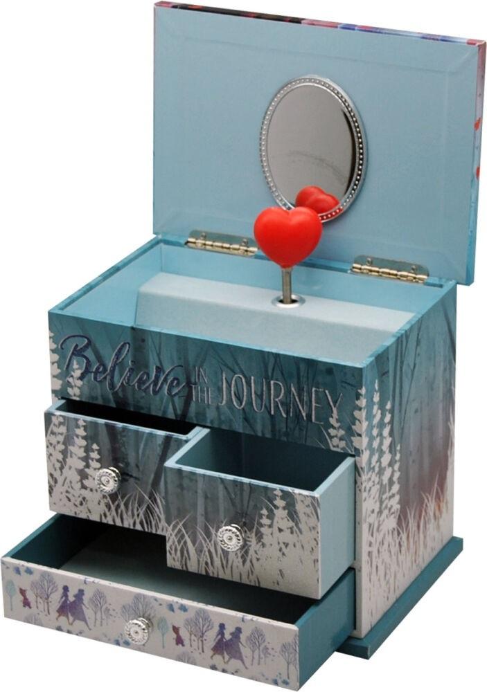 Pudełko na biżuterię z motywem Frozen oraz lusterkiem i efektami dźwiekowymi to wyjątkowo atrakcyjny prezent dla Twojego dziecka. Taka szkatułka to idealne miejsce na przechowywanie dziewczęcych skarbów i bezcennych dziecięcych kosztowności.