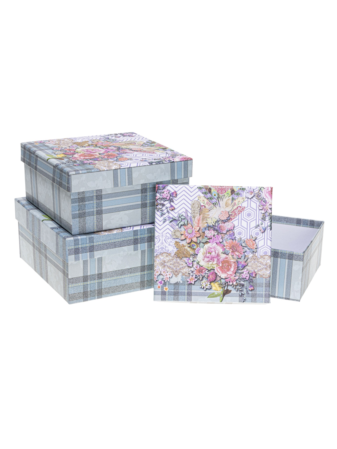 Zestaw pudełek prezentowych 3szt, motyw kraty z kwiatami
