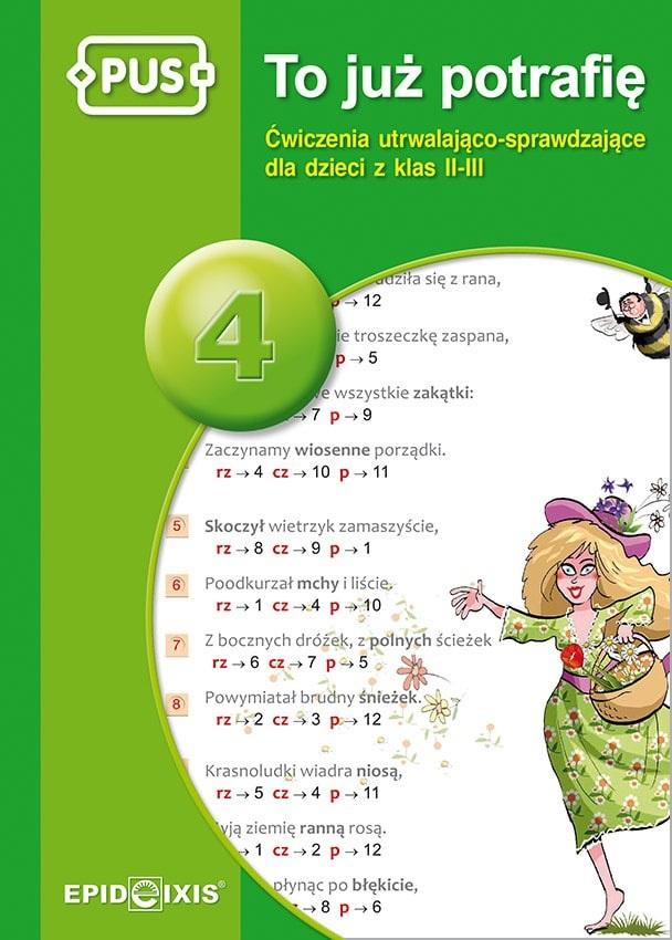 Czwarta książeczka z serii To już potrafię przeznaczona jest dla dzieci w klasach II-III; zawiera bogaty i uporządkowany materiał utrwalająco – sprawdzający, oparty na założeniach programowych nauczania zintegrowanego, który obejmuje: