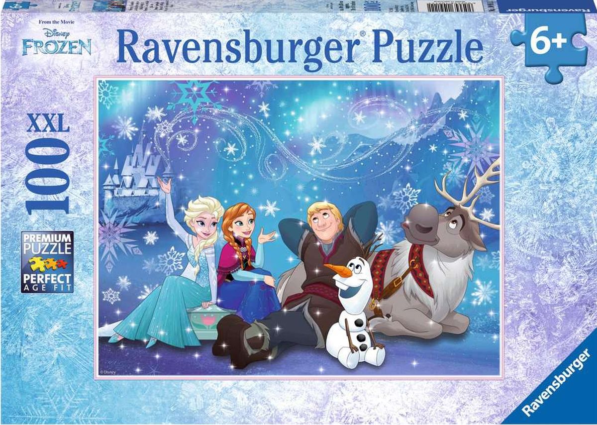 Puzzle Ravensburger są puzzlami najwyższej jakości. Obrazek ze 100 elementów przedstawia bohaterów z bajki Disneya, Kraina Lodu.