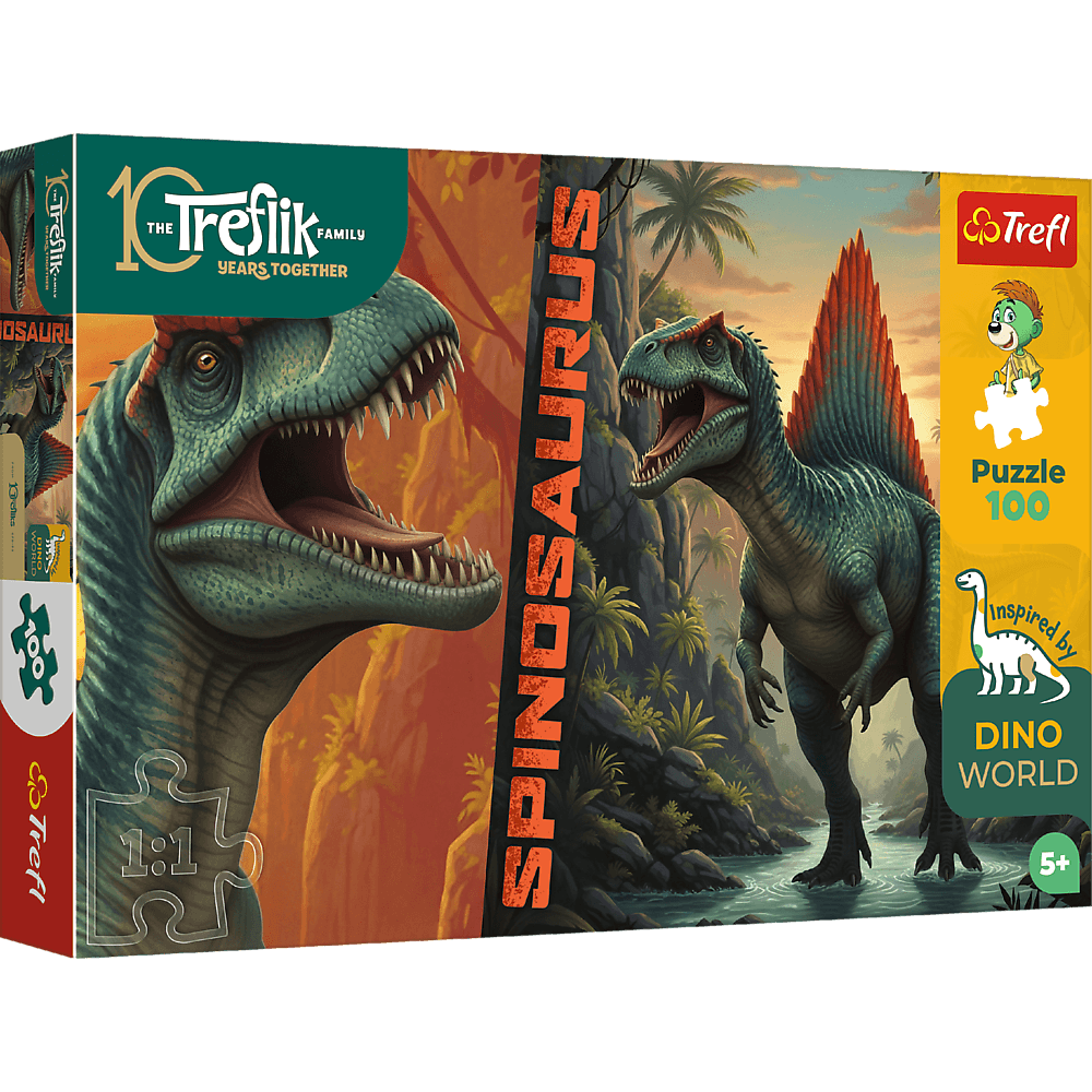 Spinosaurus to puzzle składające się z 100 elementów, zaprojektowane z myślą o małych fanach dinozaurów. Po ułożeniu układanki powstanie obrazek o wymiarach 410x275 mm.
