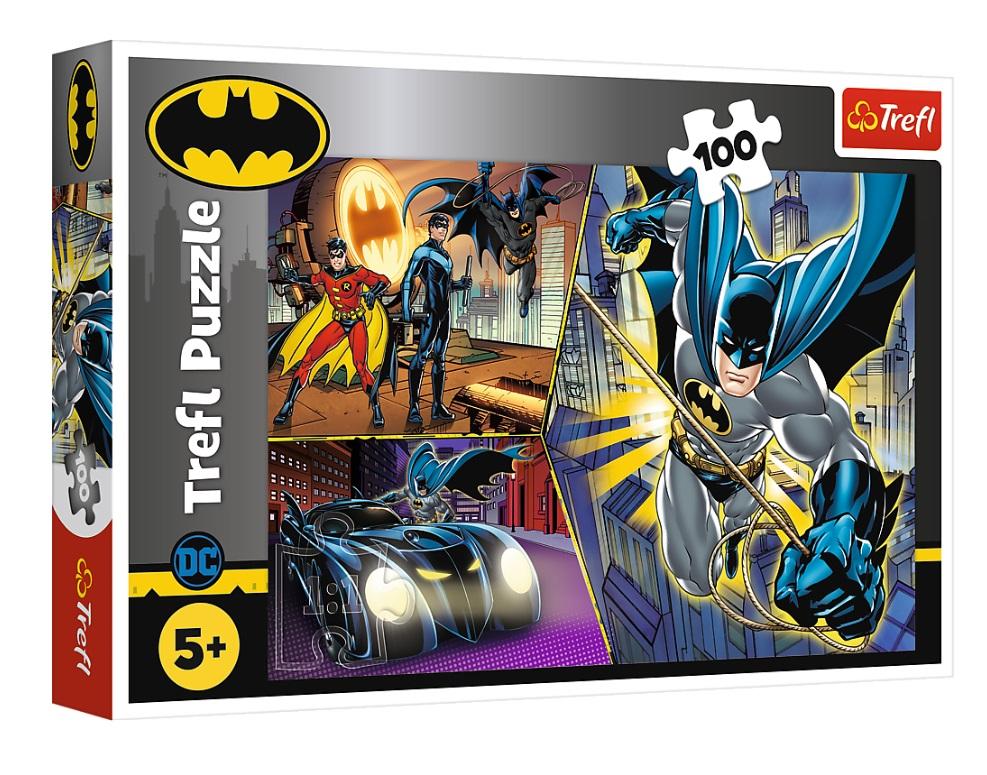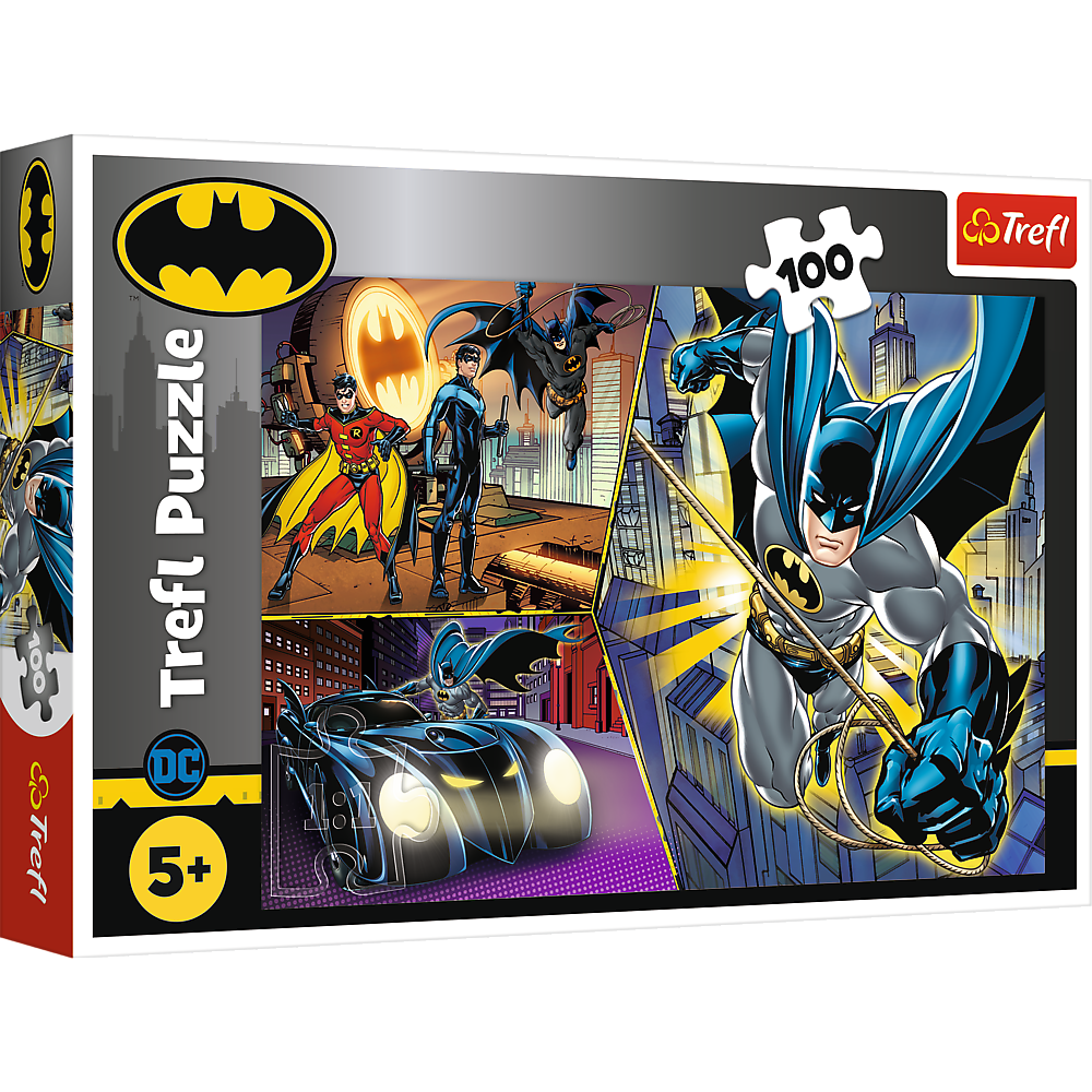Puzzle wysokiej jakości, znanej i cenionej marki Trefl, 100 elementów z Batmanem i jego kompanami.