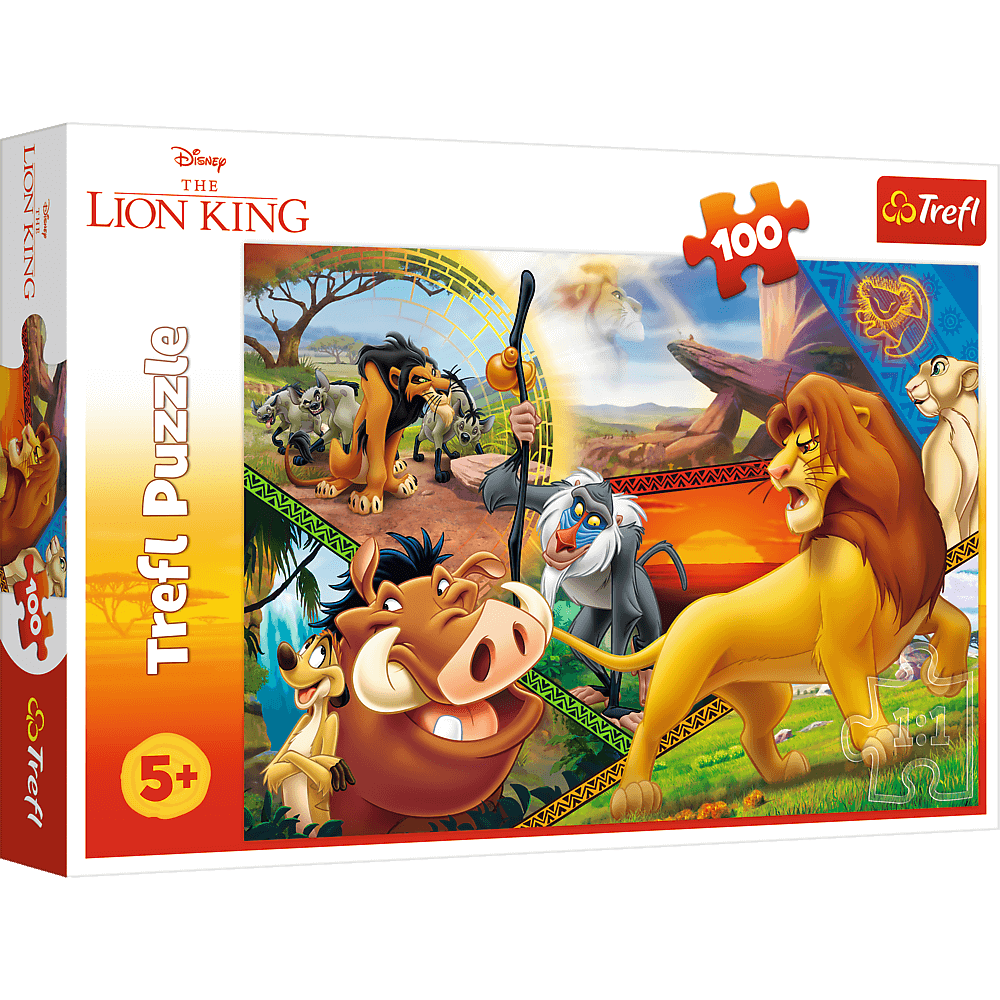 Wysokiej jakości puzzle z bohaterami ponadczasowej animacji Disneya ""Król Lew"". Trwały rysunek stworzony przy pomocy bezpiecznych farb spożywczych.