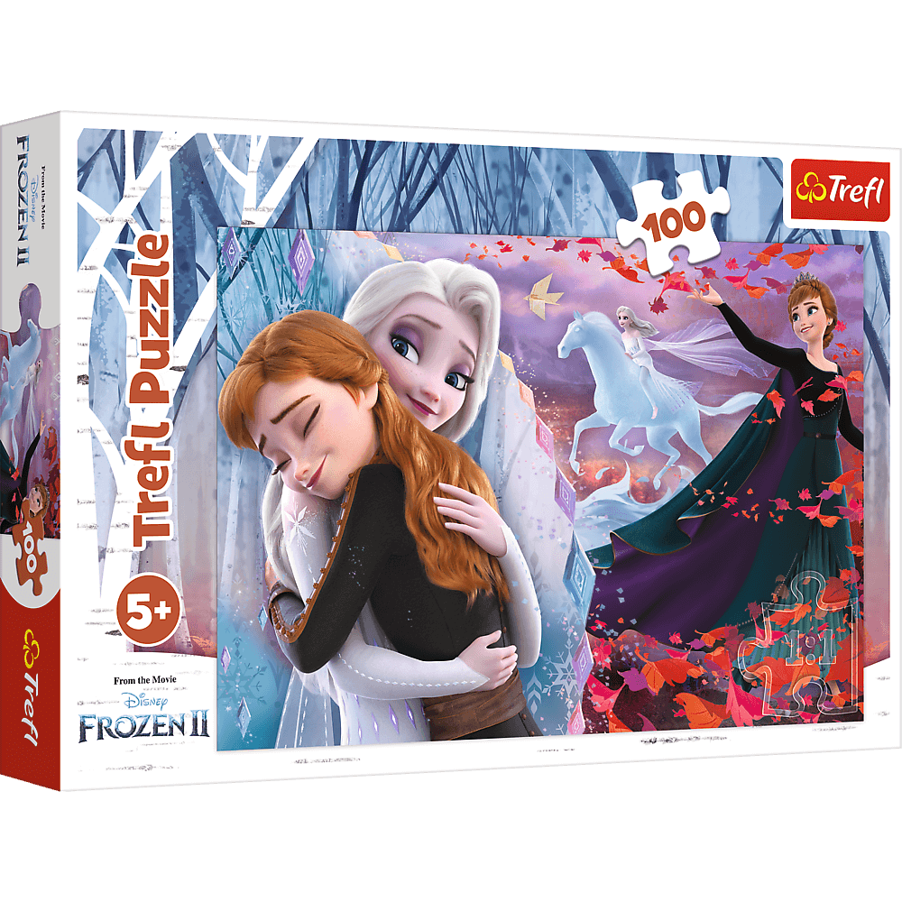 Puzzle wysokiej jakości, znanej i lubianej marki Trefl, 100 elementów z postaciami z filmu Frozen II.