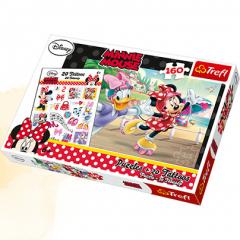 Puzzle 160 elementów oraz zestaw 20 zmywalnych tatuaży z Minnie i Daisy na wrotkach. Po ułożeniu powstanie obrazek o wymiarach 41x27,8 cm. Wysoką jakość, nasycenie kolorów i bezpieczeństwo układania zapewnia kalandrowany papier odbijający światło i wykorzystanie materiałów ekologicznych.