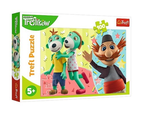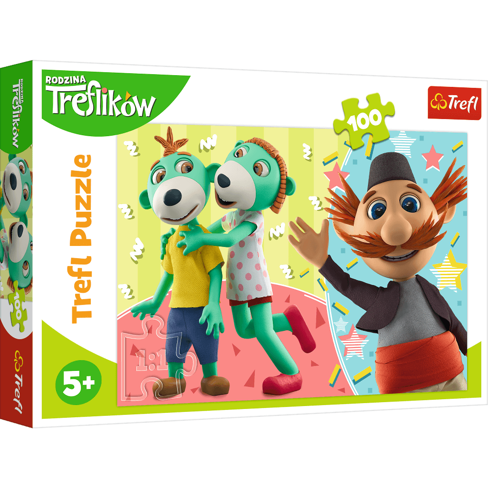 Puzzle składające się ze 100 elementów, zaprojektowane z myślą o wszystkich fanach i fankach serialu dla dzieci pt. "Rodzina Treflików". Po ułożeniu układanki powstanie obrazek o wymiarach 410x275mm.