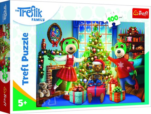 Zimowe Trefliki to puzzle, które składają się ze 100 elementów. Zostały zaprojektowane specjalnie z myślą o małych fanach Rodziny Treflików. Po ułożeniu puzzli powstanie obrazek o wymiarach 410x275mm.