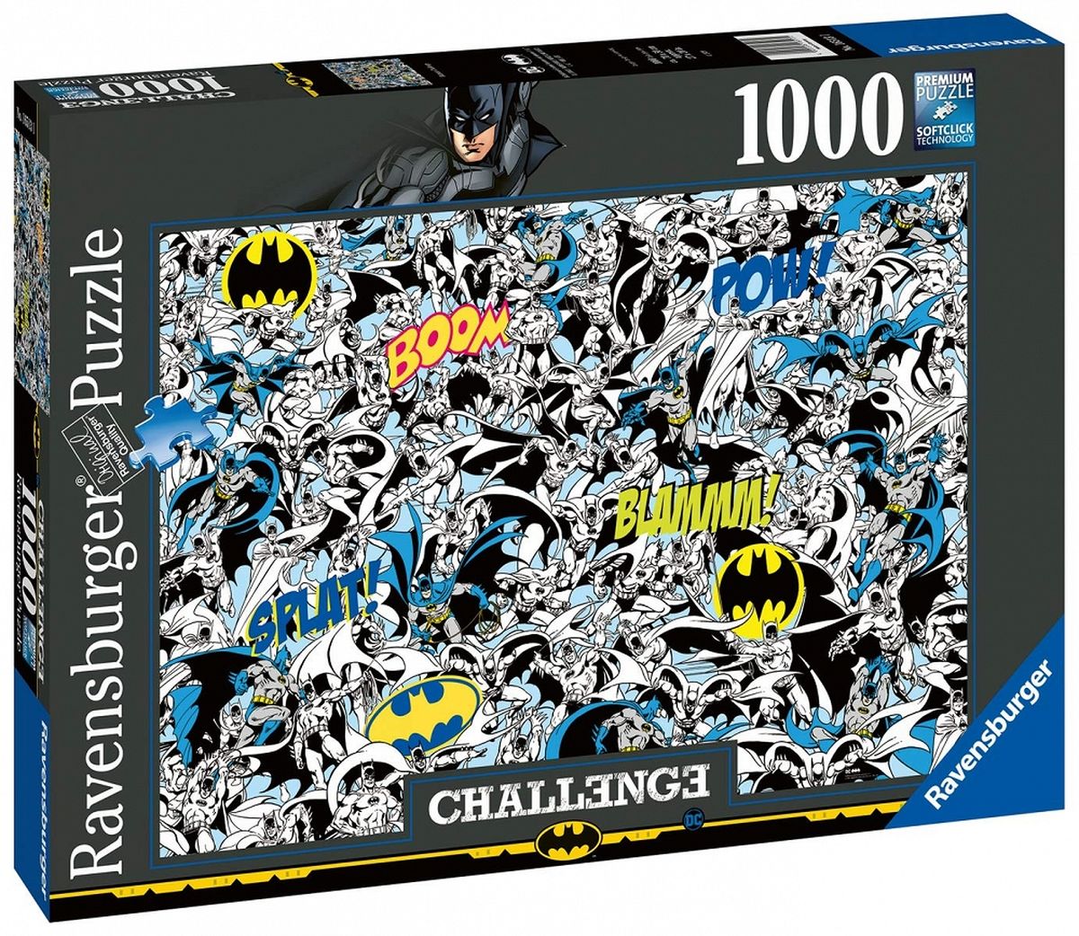 Puzzle 1000 elementów Ravensburger z serii Challenge to idealny produkt dla wszystkich poszukujących wyzwań! Układanka posiada motyw z Batmanem, ułożonym jednak w takiej sekwencji, że trzeba wytężyć wzrok, aby podołać zadaniu. Po ułożeniu puzzle mają wymiary 70 x 50 cm
