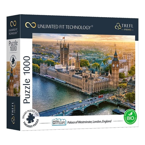 Puzzle z serii Trefl Prime UFT składające się z 1000 elementów są dedykowane prawdziwym miłośnikom układanek. Puzzle przedstawiają zachwycający widok na Pałac Westminsterski w Londynie. Po ułożeniu powstanie obraz o wymiarach 683x480 mm.