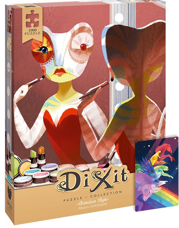 Dixit: Puzzle to wysokiej jakości puzzle złożone z 1000 elementów, które po złożeniu dają obraz o wymiarach 48x68 cm. Autorką ilustracji jest Marie Cardouat, francuska ilustratorka, która stworzyła grafiki dla gier Dixit i Dixit: Odyseja oraz dodatku Dixit 2: Przygody.