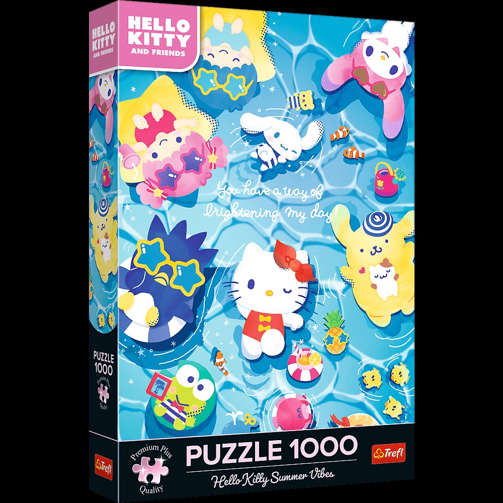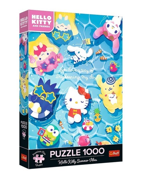 Puzzle Hello Kitty Summer Vives przedstawiają Kitty White i jej przyjaciół podczas letniego relaksu. Po ich ułożeniu powstanie obraz o wymiarach 683x480 mm.