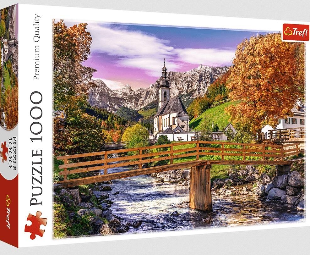 Puzzle składające się z 1000 elementów przedstawiające zachwycający krajobraz na Bawarię w kolorach jesieni. Po ułożeniu powstanie obrazek o wymiarach 683x480 mm.