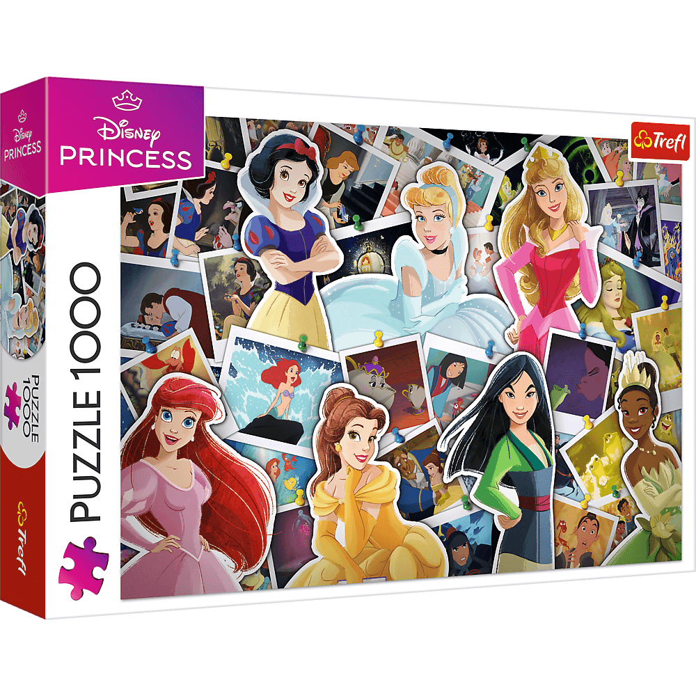 Puzzle Księżniczki Disneya, składające się z 1000 elementów, przedstawiają kolaż z bohaterkami bajek Disneya. Po ich ułożeniu powstanie obrazek w rozmiarach 683x480 mm.