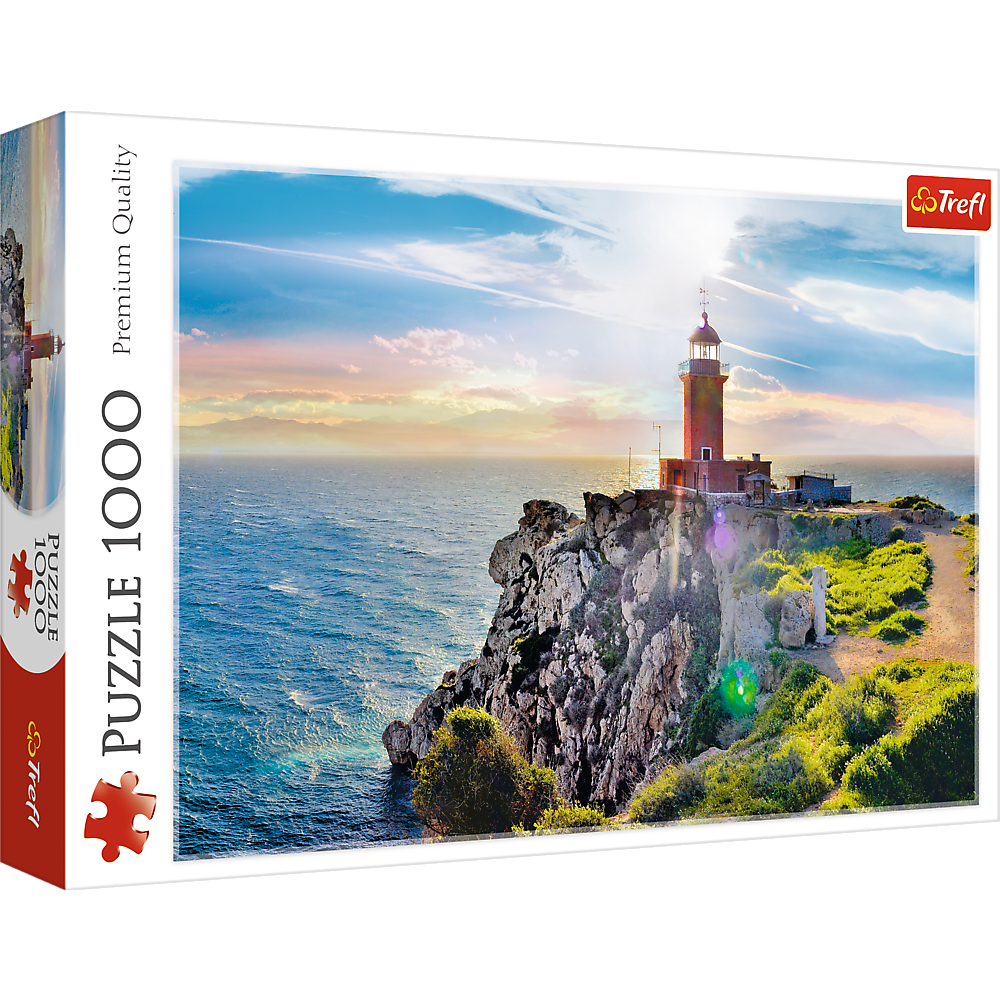 Puzzle 1000 elementów przedstawiające latarnię morską w greckim Melagavi. Po ułożeniu powstanie obrazek o wymiarach 68x48 cm. Wysoką jakość, nasycenie kolorów i bezpieczeństwo układania zapewnia kalandrowany papier odbijający światło, pokryty ekologicznymi farbami spożywczymi.