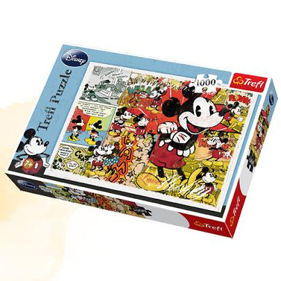 Puzzle 1000 elementów z popularną Myszką Miki w zupełnie nowej odsłonie w stylu retro. Po ułożeniu powstanie obrazek o wymiarach 68x48cm. Wysoką jakość, nasycenie kolorów i bezpieczeństwo układania zapewnia wykorzystanie materiałów ekologicznych. Puzzle oparte na licencji Disneya.