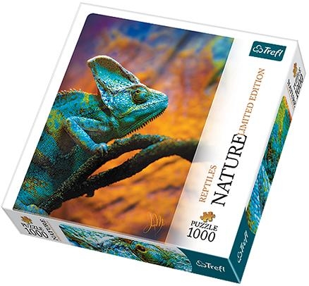 Nature Limited edition - KameleonKolekcja puzzli przedstawia zdjęcia uznanych na świecie artystów fotografów, specjalizujących się w fotografowaniu przyrody. Zdjęcia najwyższej jakości podkreślają detale, wyjątkową gamę kolorów i grę światła. Z pewnością zadowoli ona zarówno prawdziwych miłośników przyrody, jak i pasjonatów fotografii. Po ułożeniu powstanie obrazek o wymiarach 68x48cm ze zdjęciem kameleona.