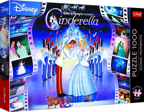 Puzzle Kopciuszek przedstawiają niezapomniane ujęcie z bajki Disneya. Po ich ułożeniu powstanie obraz o wymiarach 683x480 mm.