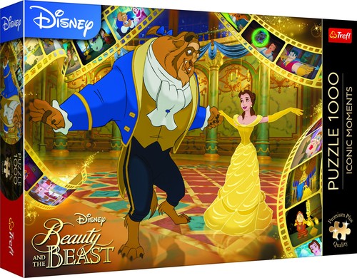 Puzzle Piękna i Bestia przedstawiają niezapomniane ujęcie z bajki Disneya. Po ich ułożeniu powstanie obraz o wymiarach 683x480 mm.