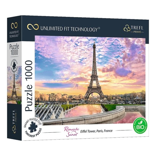 Puzzle z serii Trefl Prime UFT składające się z 1000 elementów są dedykowane prawdziwym miłośnikom układanek. Puzzle przedstawiają czarujący widok na Wieżę Eiffla w Paryżu. Po ułożeniu powstanie obraz o wymiarach 683x480 mm.