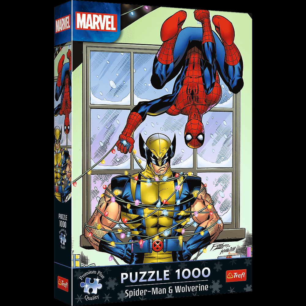 Puzzle Spider-Man & Wolverine: Święta przedstawiają bohaterów z uniwersum Marvela, w świątecznym wydaniu. Po ich ułożeniu powstanie obraz o wymiarach 683x480 mm.