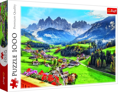 Puzzle St. Magdalena, Dolomity, Włochy, składające się z 1000 elementów, przedstawiają piękny widok na Dolomity we Włoszech. Po ich ułożeniu powstanie obrazek w rozmiarach 683x480 mm.