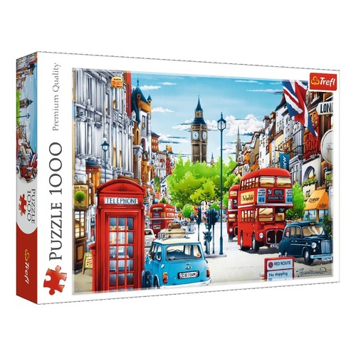 Puzzle składające się z 1000 elementów przedstawiające piękny widok na jedną z londyńskich ulic. Po ułożeniu powstanie obrazek o wymiarach 683x480 mm. Produkt został wykonany z wysokiej jakości materiałów, z zastosowaniem specjalnego kalandrowanego papieru odbijającego światło, co ułatwia układanie. Produkt został wyprodukowany w Polsce, a do produkcji zostały użyte materiały ekologiczne.