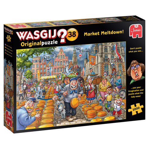 WASGIJ to znakomita seria puzzli holenderskiej marki Jumbo, bijąca rekordy popularności i ciesząca się ogromnym uznaniem wśród puzzlomaniaków. Zamiast tradycyjnego układania obrazka widocznego na pudełku, Wasgij rzuca miłośnikom puzzli nie lada wyzwanie, bowiem obraz z pudełka jest jedynie wskazówką do rozwiązania rzeczywistej układanki! Każdy miłośnik układanek będzie się musiał nieźle nagłówkować i użyć wyobraźni, by odkryć, co skrywają puzzle Wasgij. Istnieją cztery serie główne w rodzinie puzzli Wasgij oraz dodatkowa seria Retro. Znacznie się od siebie różnią, ale łączy je jedna bardzo ważna cecha - obrazek na pudełku nigdy nie jest obrazkiem, który będziesz układać! Wasgij Original - postaw się na miejscu jednego z bohaterów układanki i odgadnij, co w danym momencie widzi - to właśnie obrazek, który będziesz musiał ułożyć. Dzięki temu do samego końca nie będziesz wiedział, jak wygląda w całości rozwiązana układanka! Wasgij Destiny - układanie tej serii to jak podróżowanie w czasie. Będziesz musiał użyć swojej wyobraźni, by odkryć (i ułożyć rzecz jasna), jak wyglądałaby scenka z obrazka oraz jej bohaterowie w dzisiejszych czasach. Wasgij Mystery - to seria dla mistrzów dedukcji. Spróbuj przewidzieć, jak potoczą się losy bohaterów obrazka na pudełku w ciągu najbliższych kilku minut i ułóż "rozwiązanie". Wasgij Christmas - to świąteczna kolekcja puzzli Wasgij, w której podobnie jak w serii Wasgij Original będziesz musiał odgadnąć i ułożyć, co w danym momencie widzi jeden z bohaterów obrazka. Wasgij Retro - chciałbyś zobaczyć, jak to wszystko się zaczęło? Co sprawiło, że puzzle Wasgij zyskały tak ogromną popularność? Dzięki serii Retro będziesz mógł zmierzyć się z pierwszymi układankami z rodziny Wasgij, w nowej odświeżonej edycji. Prawdziwa gratka dla kolekcjonerów!