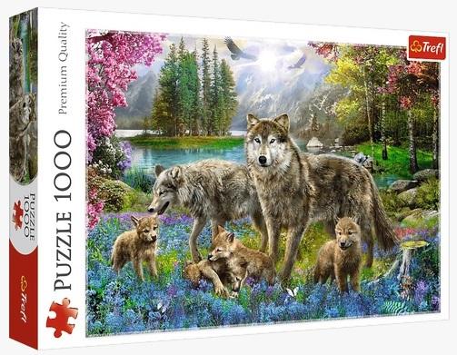 Puzzle składające się z 1000 elementów przedstawiające stado wilków. Po ułożeniu powstanie obrazek o wymiarach 683x480 mm. Produkt został wykonany z wysokiej jakości materiałów, z zastosowaniem specjalnego kalandrowanego papieru odbijającego światło, co ułatwia układanie. Produkt został wyprodukowany w Polsce, a do produkcji zostały użyte materiały ekologiczne.