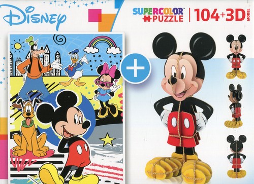 Puzzle Super Color 104 el. wraz z kartonowym modelem 3D ulubionego bohatera Disney'a do samodzielnego złożenia. Wyjątkowe barwy druku uzyskano dzięki wykorzystaniu technologii Super Kolor.