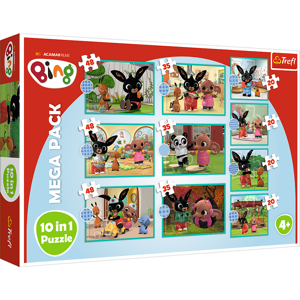Puzzle składające się z 10 niezależnych układanek, zaprojektowane z myślą o wszystkich fanach bajki Bing. Po ułożeniu puzzli powstaną obrazki o wymiarach 223x156mm oraz 167x156mm. Zróżnicowana liczba elementów pozwala na zabawę zarówno młodszym, jak i nieco starszym dzieciom.