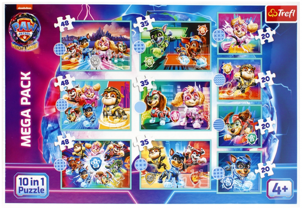 Puzzle Wesoły dzień piesków składające się z 10 niezależnych układanek, zostały zaprojektowane z myślą o wszystkich fanach bajki Psi Patrol. Po ułożeniu puzzli powstaną obrazki o wymiarach 223x156mm oraz 167x156mm. Zróżnicowana liczba elementów pozwala na zabawę zarówno młodszym, jak i nieco starszym dzieciom.