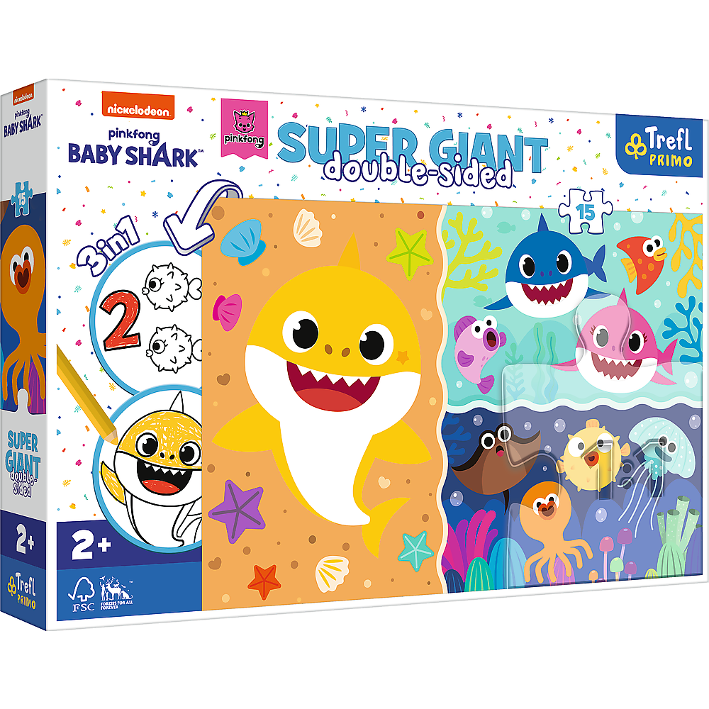 Puzzle podzielone są na 15 elementów, a na odwrocie układanki znajdują się aż dwie zabawy - kolorowanka oraz prosta gra z elementami kolorowania.