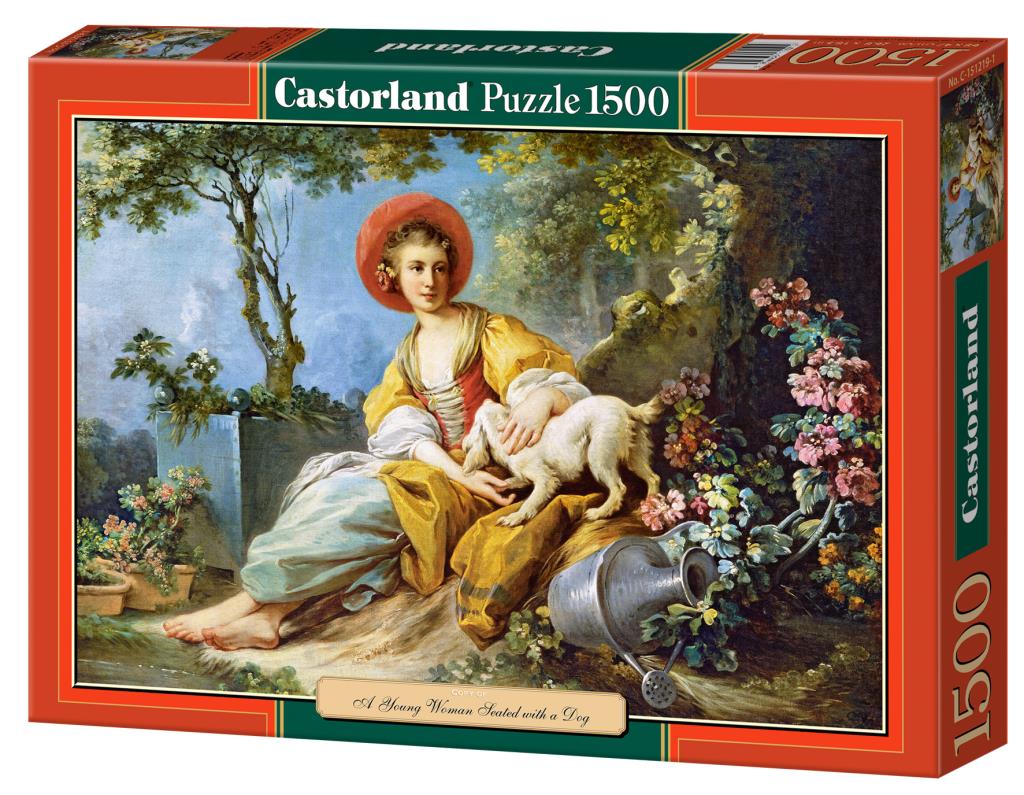 Opakowanie Puzzle 1500 A Young Woman Seated with a Dog CASTOR