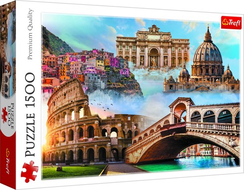 Puzzle 1500 elementów przedstawiające popularne miejsca we Włoszech.